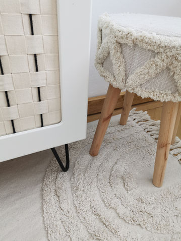 Das erste Highlight sind die Tür-Inlays. Sie sind mit breiten, beigen, handgewebten Baumwollbändern versehen worden. Um das ganze och peppiger zu machen kam auch dünnes, schwarzes Makrameegarn zum Einsatz.